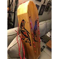 Wood designs and projects come in many forms. These include frames for glass and mirrors, bentwood cedar for cradles and bentwood boxes, as well as large bentwood box base drums. Cedar may also be burned or carved designs.