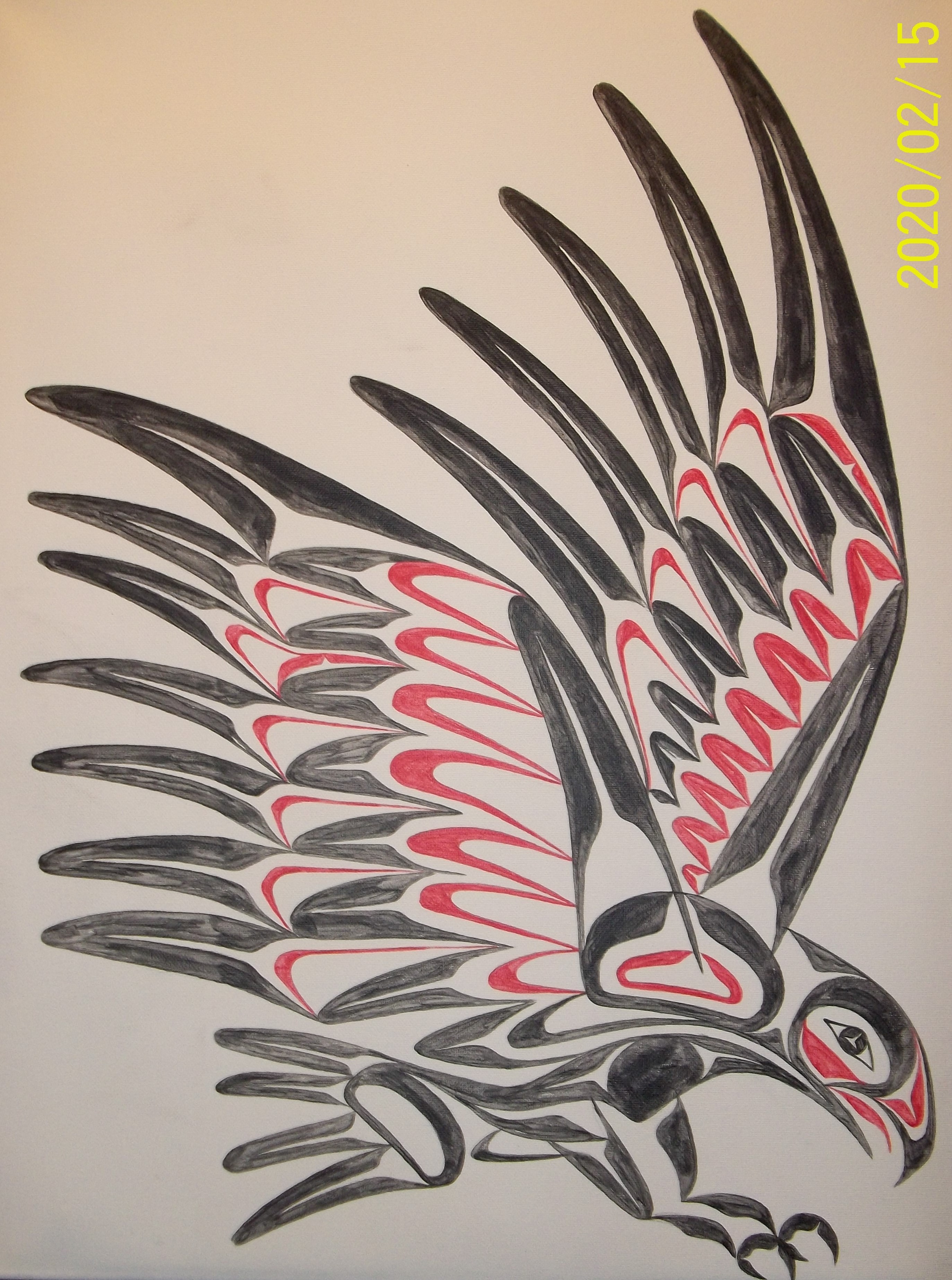 As a young boy growing up in Port Edward, I was introduced to First Nations art through an art program in grade three. This art program is where I learned to draw shapes, put those shapes together and create spirit animals. These animal shapes were the cultural identity of my cultural heritage, Nisga'a.